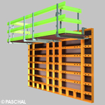 PASCHAL, the Baden based formwork manufacturer and service provider has developed a new concreting platform for the LOGO formwork. The platform is 238 cm long and 120 cm wide, therefore providing a sufficiently large workspace on the wall formwork. The LOGO concreting platform consolidates all individual components for a safe working platform into a single unit: board, lateral protection, lifting eyes (for crane transport), and load support brackets.